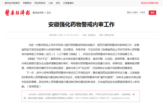 安徽强化药物警戒内审工作